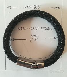 Causa inutilizzo, vendo bracciale semirigido unisex (J-MAX Jewels) in vera pelle, diametro cm 6,5 - lunghezza cm 21,5. Chiusura magnetica in acciaio inox, resistente alla ruggine, anti-corrosione e ossidazione. Proprietà anti-allergiche. E' veramente bello, uno stile di vita più che un gioiello.