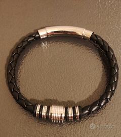 Mai indossato, in ottimo stato, con scatola originale. In acciaio 316L (anallergico) e pelle nera.
