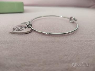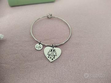 Bangle in acciaio con ciondolo cuore con sposini e scritta "Life".