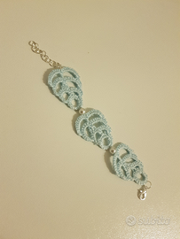 Bracciale fatto a mano uncinetto. Cotone e perline. Nuovo