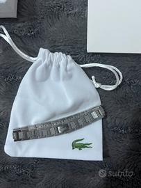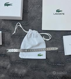 Bracciale Lacoste da uomo completo di scatola, sacchetto con logo Lacoste e cartoncino del brand.