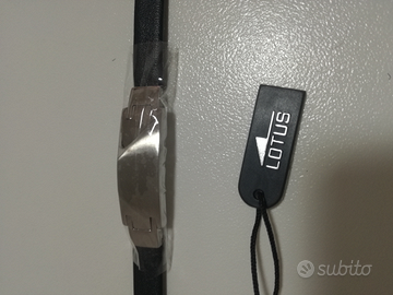 Bracciale Lotus, in pelle con inserti in acciaio cromato.