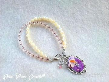 Bracciale filo di madreperla, filo di cristalli e perline ciondolo lavorato a mano in pasta polimerica Se mi contatti posso mostrarti tutti i tipi di gioielli disponibili anche in pietre dure naturali come quarzo, ametista, avventurina, giada, lapislazzuli etc. Mi trovate come Dolce Venus Creative su pagina Facebook o Instagram