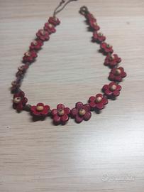 Bracciale marrone con fiori rossi bordeaux femminile donna