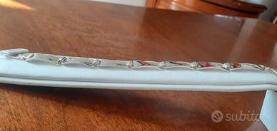 Bracciale maschile, realizzato a mano in argento 925/1000, composto da 7 maglie con aggancio a cavallotto, per una lunghezza complessiva, compreso di chiusura a moschettone, di centimetri 20,00. Il peso di questo bracciale è di grammi 14,50, la larghezza della maglia è di cm. 0,90 mentre la lunghezza è di cm. 2,40, con spessore di 1 millimetro con bombatura verso l'interno. Nel caso in cui il bracciale servisse in maniera diversa di misura, sarà a vostra richiesta modificato gratuitamente prima della spedizione. Il gioiello è nuovo, mai indossato e custodito nel suo astuccio di vendita. Il gioiello verrà spedito completo di garanzia e astuccio regalo.
