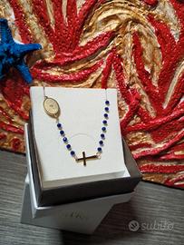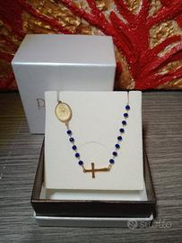 bracciale religioso bracciale rosario blu con medaglia Gesù e croce nuovo mai indossato acciaio