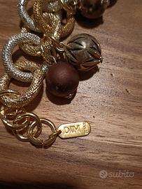 Bracciale mai usato in metallo colore oro, argento e bronzo , charms pendenti. Lunghezza 21 cm. Marca Dim Bijoux, made in Italy