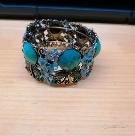 Bracciale a scatto di diametro 7 cm, con decorazioni di fiori e pietre.