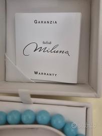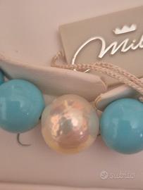 Bracciale nuovo, con garanzia, in astuccio originale compresa shopper bag del gioielliere. Si compone di perla bianca circa 14 mm, sfere di varia grandezza in turchese agglomerato e stellina in oro 750, tutto riportato sulla garanzia