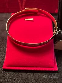 Vendo bellissimo bracciale ricondizionato a molla in oro giallo con targhetta in oro bianco 18k 750 modello Cartier unisex pari a nuovo con la sua confezione in velluto.Il bracciale pesa 12 Grammi,è stato indossato pochissime volte ed è privo di graffi o segni di usura.