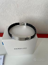 Bracciale in acciaio e pelle. Lunghezza 21 cm. L'articolo è completo di astuccio, cuscino di presentazione e certificato di garanzia scaduto (passati i 24 mesi ma acciaii e gioiello garantiti a vita.)