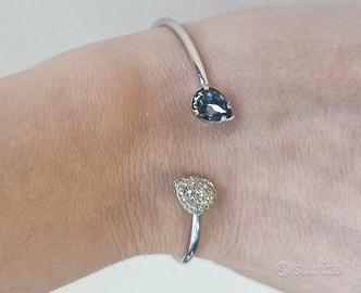 Bracciale Morellato rigido, Materiale: Argento sostenibile, Zirconi colore bianco a goccia e zircone blu-azzurro a goccia. Peso: 4,300 gr. Assente confezione originale.
