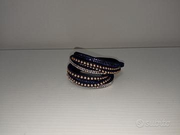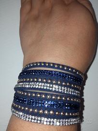 Bracciale multifilo aperto in tessuto con strass