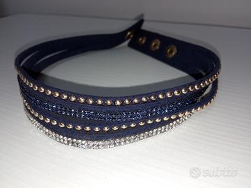 Bracciale multifilo aperto in tessuto con strass Lunghezza 38cm