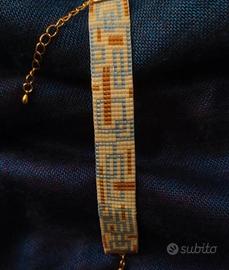 Il bracciale "Nefertiti" incarna l’eleganza e il carisma di una delle regine più affascinanti dell’antico Egitto. Tessuto a mano con perline Miyuki 11/0, il suo design geometrico richiama i raffinati ornamenti delle corti reali, mentre la palette di colori—azzurro, crema e oro—evoca i gioielli e le decorazioni indossati dalla sovrana. L’azzurro richiama il celebre copricapo della regina, simbolo di potere e bellezza, mentre le tonalità dorate rimandano alla ricchezza e alla luce del sole, fonte di vita e divinità. Un gioiello che racchiude il fascino senza tempo di Nefertiti, pensato per chi desidera portare con sé un frammento di storia e regalità.