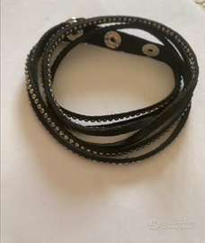 Bracciale nero con strass. Doppio giro, chiusura con bottone a pressione regolabile in tre diverse posizioni. Nuovo mai usato.