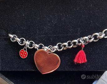 aggiunti a parte 2 charms della collezione Lady Fortune : 1 coccinella smaltata e 1 ciuffetto in fili di seta rossa