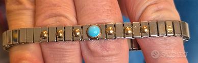 Bracciale ORIGINALE Nomination, estensibile, in acciaio e oro 750 e con pietra opale tonda azzurra al centro. Acciao anallergico, come nuovo