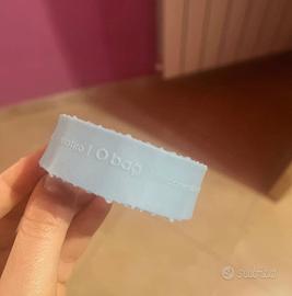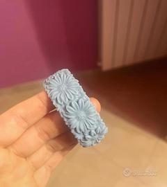Bracciale Obag in silicone e gomma. Taglia S. Colore celeste, motivo a fiorellini. Nessun difetto, come nuovo.