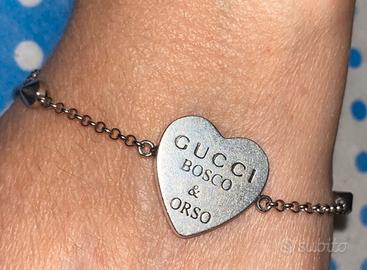 Bracciale originale Gucci in argento 925, serie Bosco &Orso, con cuore e numero 25 che rappresenta il versetto preferito da Alessandro Michele, (direttore creativo) di Shakespeare. Indossato veramente poco. Misura 18.