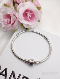 🌺Vendo Bracciale originale pandora della mia collezione personale completo di 6 charms originali Pandora. -Composto dal bracciale pandora in ottime condizioni misura 19cm con chiusura a barile maglia snake con logo S925 ALE ben visibile all'interno della chiusura. -Due clip modello cuori intrecciati, ottime condizioni come da foto, chiusure ben salde e logo S925 ALE ben visibile all'interno delle clip. -Una Clip a forma di cuore in argento in ottime condizione generali come da foto, chiusura ben salda e logo S925 ALE ben visibile all'interno della clip. -Un Charm cuore in pavè smaltato con zirconi brillanti e tutti perfettamente incastonato. Logo S925 ALE sbiadito ma ancora leggermente visibile -Un Charm in vetro di murano bianco modello bolle frizzanti. Presenta dei piccoli segni di utilizzo poco visibili come da foto. Logo S925 ALE leggermente sbiadito ma ancora visibile come da foto. -Un Charm in vetro di murano rosso sfacettato, in buone condizioni generali. Presenta un piccolo difetto sul vetro come mostrato nelle foto che non compromette la bellezza del Charm. Logo S925 ALE ben visibile. ✅ Il bracciale con i charms é stato usato si presenta in Ottime condizioni generali come da foto. Sempre tenuto con cura. Pulito e igienizzato. 🎁 Spedito con scatola e busta originale pandora Per altre foto chiedete pure, non posso caricarle tutte nell'annuncio.