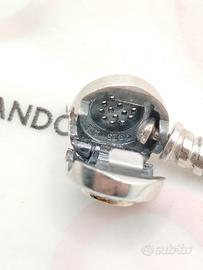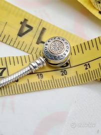 Vendo Splendido bracciale originale Pandora Moments con l'iconica maglia "snake" in Argento 925 Il dettaglio che lo rende speciale è la chiusura sferica : un design bicolor con un inserto centrale in Oro Giallo 14k impreziosito da un pavé di luminose pietre di zirconi tutti perfettamente incastonati e luminosi. Misura 20 Logo S925 ALE ben visibile. Ottime condizioni come da foto. Spedito con la scatola pandora.