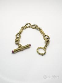 Bracciale in oro giallo 18 KT ( 750 ‰ )di grammi 48.10, con diamanti naturali taglio a brillante e Rubini naturali taglio cabochon.