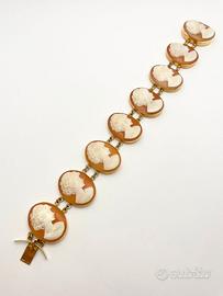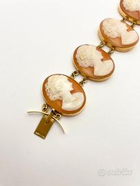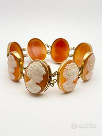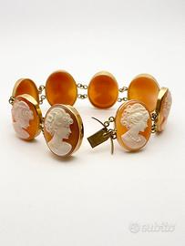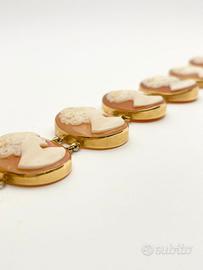 Bracciale in oro giallo 18KT ( 750 ‰ ) di grammi 34.20 con cammei naturali, epoca 1960.