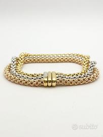 Bracciale in oro giallo, bianco e rosa 18 KT ( 750 ‰ ) di grammi 31.65. Firmato FOPE.