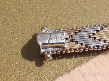 Vendo bracciale vintage in oro giallo e bianco 18 carati, lavorazione lucida e satinata a graffette. Peso 30 grammi. Certificato di casa d'asta. Non spedisco.