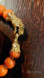 Bellissimo e rarissimo Bracciale in oro e Corallo, con testa di Drago e uncino che fanno da chiusura. Oro ben presente. Con pietre incastonate negli occhi e nel naso. Disponibilità ad inviare foto dettagliate.