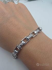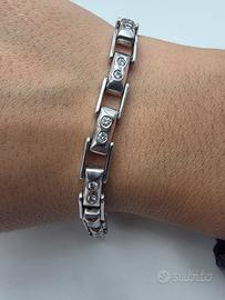Bellissimo bracciale in oro bianco massiccio 18 carati a placchette ciascuna con due diamanti naturali in totale 26 diamanti di taglio brillante di 0,80 carati complessivi. Perfetto sia da uomo che da donna.