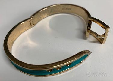 Bracciale Ottaviani bijoux Bangle rigido dorato con smalto turchese. Prodotto originale, ma privo di scatola.