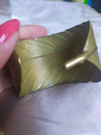 Bracciale di ottone vintage colore oro a forma di foglia d'alloro da portare sia al polso sia nel braccio;