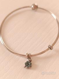 Vendesi bracciale pandora in acciaio munito di charm "quadrifoglio portafortuna".