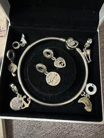 vendo tutto come in foto, del bracciale e i due charm centrali ho le garanzie, il resto non ho piu i certificati, bracciale misura 19, contattare solo se realmente interessati🙏🏼 no affaristi o perditempo. Tutto originale Pandora usato🥰 solo il bracciale in negozio costa 70 euro