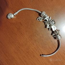 vendo bracciale Pandora in argento Moments con chiusura a cuore, con 9 charm.