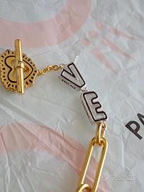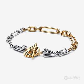 Indossa gioielli ispirati alla pop art con il nuovo Bracciale a catena “Love” Keith Haring™ x Pandora. Decorato da uno degli iconici simboli a cuore di Keith Haring al centro, il motivo si collega alle lettere per creare la parola “LOVE”, realizzata con una combinazione di Argento Sterling originale 925 e una finitura nell’esclusiva lega metallica placcata oro 14k. Le linee e lo stile caratteristico dell’artista sono stati ricreati utilizzando smalto nero per i simboli centrali, mentre il cuore funge anche da chiusura a T. Il bracciale è perfetto anche per essere indossato da solo. Celebra l’arte e la creatività, e indossa un’opera d’arte per ricordare sempre che l’arte è di tutti.