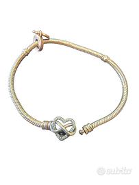 Elegante bracciale Pandora con chiusura a forma di infinito tempestata di zirconi e un pendente a cuore con inciso "Papà". Usato ma tenuto bene, basta fargli dare una lucidata e torna nuovo.
