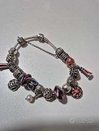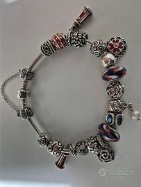 vendo bracciale in argento 925 marca Pandora. Con 19 charme Pandora. Lungo 19 cm.