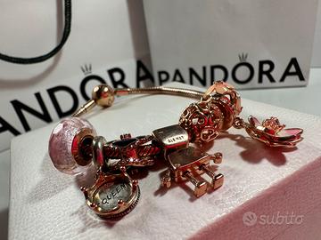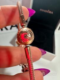 Bracciale originale Pandora in oro rosa, moments con chiusura a sfera con 7 charm, misura 18