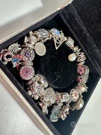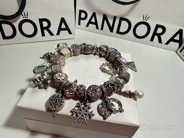 Bracciale originale Pandora, moments con chiusura pavé completo di 25 charm e catena di sicurezza, misura 19
