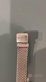 Elegante bracciale Pandora in maglia con un charm a forma di cuore tempestato di zirconi, chiusura a clip
