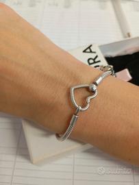 Vendo bracciale originale Pandora, con charm quadrifoglio, charm lettera R, charm gattino, charm a forma di leone e charm a forma di ferro di cavallo. Pari al nuovo, con relativa scatola, utilizzato una sola volta. Lo vendo causa inutilizzo.