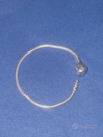 Bracciale in Argento Sterling 925 con maglia snake con cuore che dona un tocco romantico. La chiusura mostra l'incisione del logo Pandora. Personalizzando potete aggiungere fino a un massimo di 16-18 charm per creare un look unico.