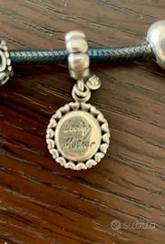 Bracciale Pandora originale, messo forse due volte . Lungo 18 cm compresa di abbottonatura. Con 5 charm originali. Non ho scatola.