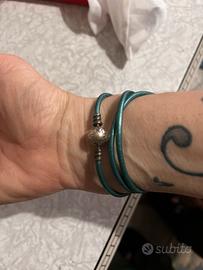 Modello a triplo giro e in vera pelle di colore verde metallizzato con chiusura in argento.