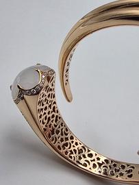 Bellissimo bracciale rigido firmato Pasquale Bruni della collezione Bon Ton Bonheur in oro rosa 18 carati, quarzo fumè e 35 diamanti naturali di taglio brillante intorno disposti a fiore. Internamente intagliato in modo originale e suggestivo.