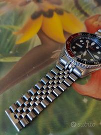 Vendo bracciale / cinturino aftermarket per Seiko SKX tenuto benissimo, come da foto. Maglie piene, finali piani, clasp logata Seiko. Sono presenti tutte le maglie aggiuntive, al momento a misura per un polso da 17cm. Ottima qualità, simile a miltat, strapcode, uncle, namoki e similari. Guardate bene le foto e in caso di dubbi non esitate a chiedere. Non si ammettono contestazioni.