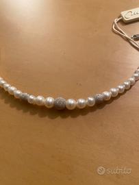 Bellissimo bracciale perle e boulle di oro bianco brillantinate MARCA MILUNA
